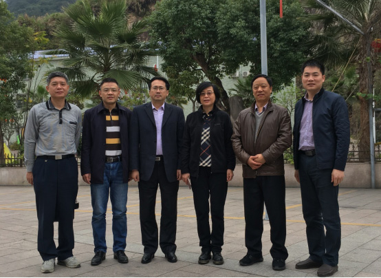 杜麗霞(左五)等與廣州對口幫扶梅州指揮部、青溪鎮(zhèn)負(fù)責(zé)同志現(xiàn)場推進(jìn)小柚果加工項(xiàng)目